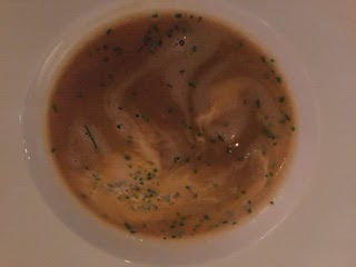 The food was very good: I had Lobster and Devon Crab Bisque to start which was delicious, followed by Pan Seared Chicken Breast and Crispy Chicken Thighs, with Butternut Squash Puree, Quince and Almonds and Madeira Sauce. The butternut squash puree was a smear across the plate (would have been nice to have more!) and the pieces of chicken were small, as is often the way with fine dining - so perhaps we would have wanted three courses anyway!
